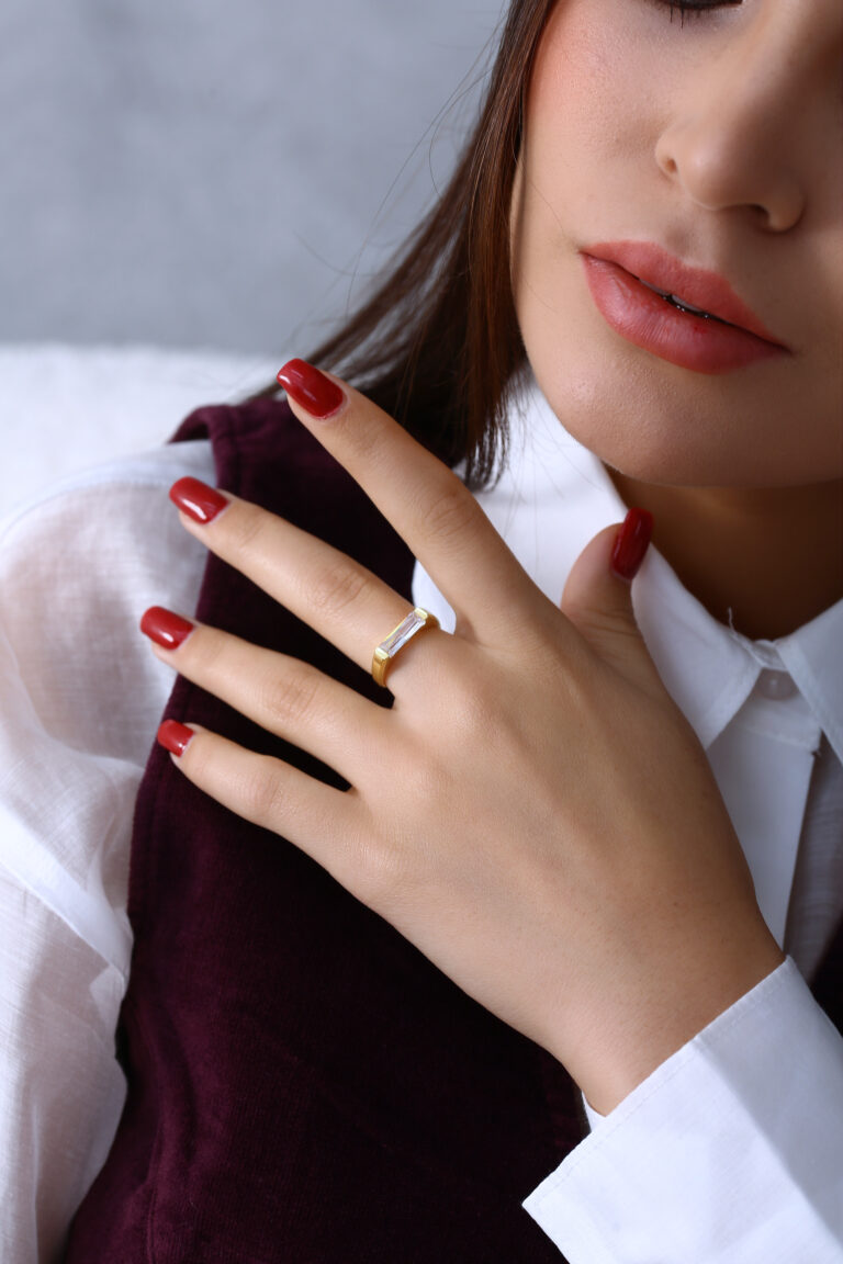 GoldPark Uzun Baget Modern Form Kadın Yüzük – 925 Ayar Gümüş