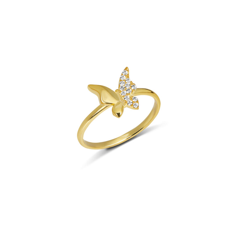 GoldPark Taş İşlemeli Kelebek Form Kadın Yüzük – 925 Ayar Gümüş