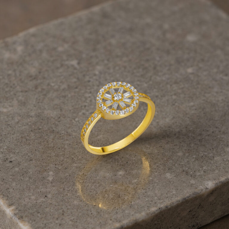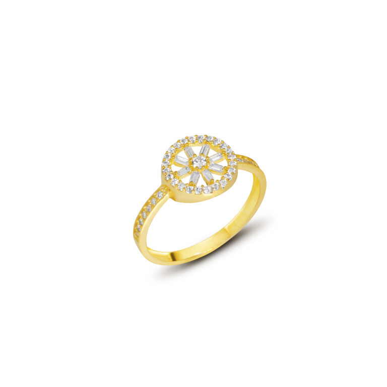 Işıltılı Tektaş Çevresi Taşlı Gold Yüzük