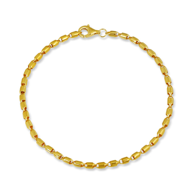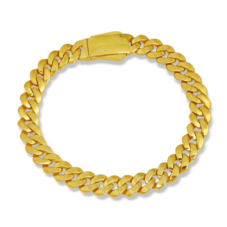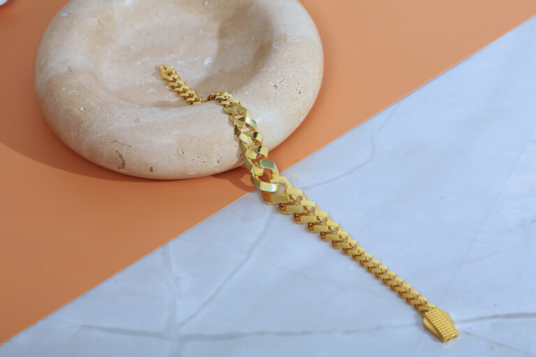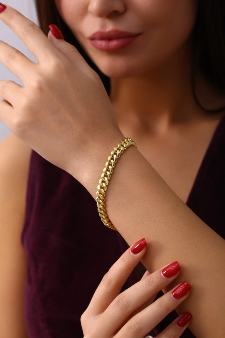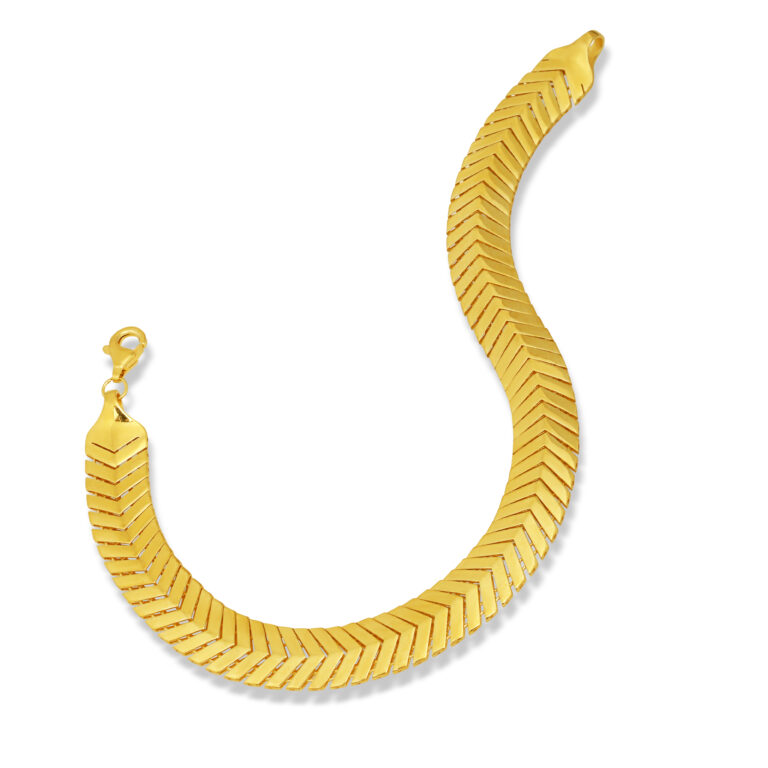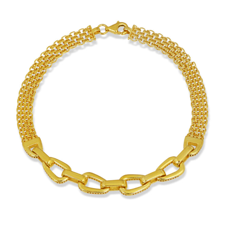 Geniş ve akıcı zincir formuyla bilekte güçlü bir duruş sergileyen, gold kaplama 925 ayar gümüş bileklik. Hem modern hem de zamansız görünümüyle günlük stil ve özel davet kombinlerinde mükemmel tamamlayıcıdır.