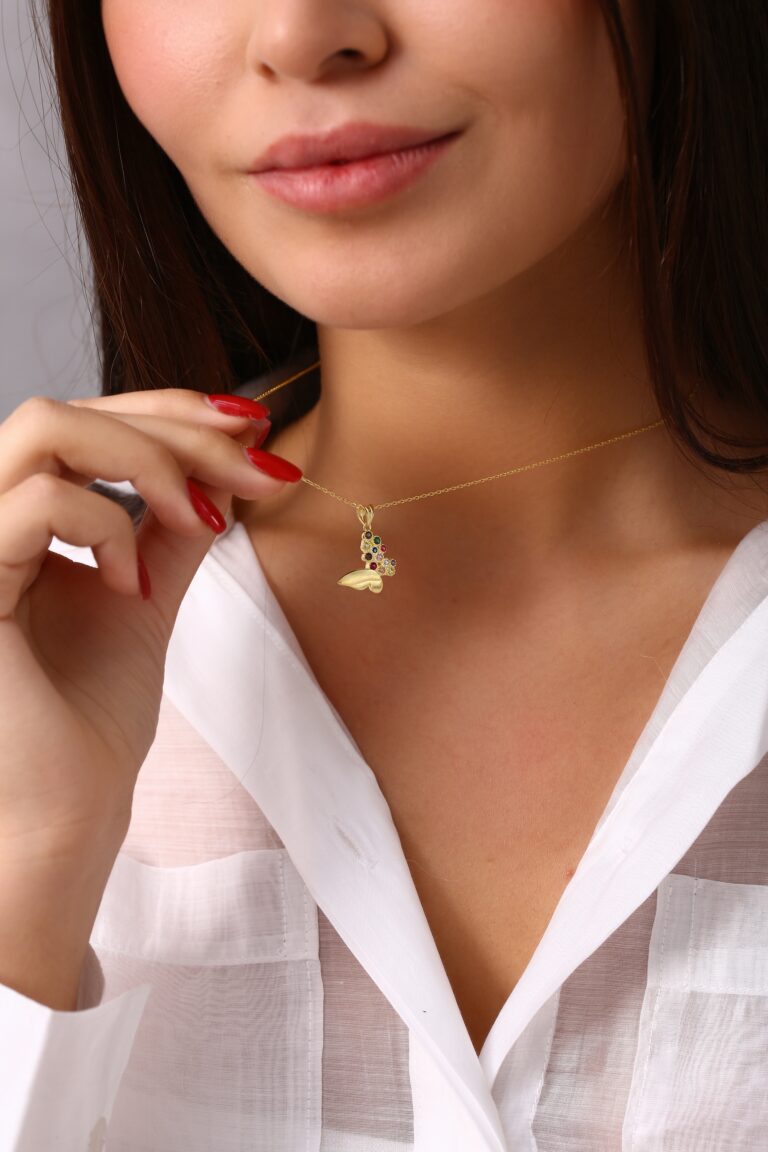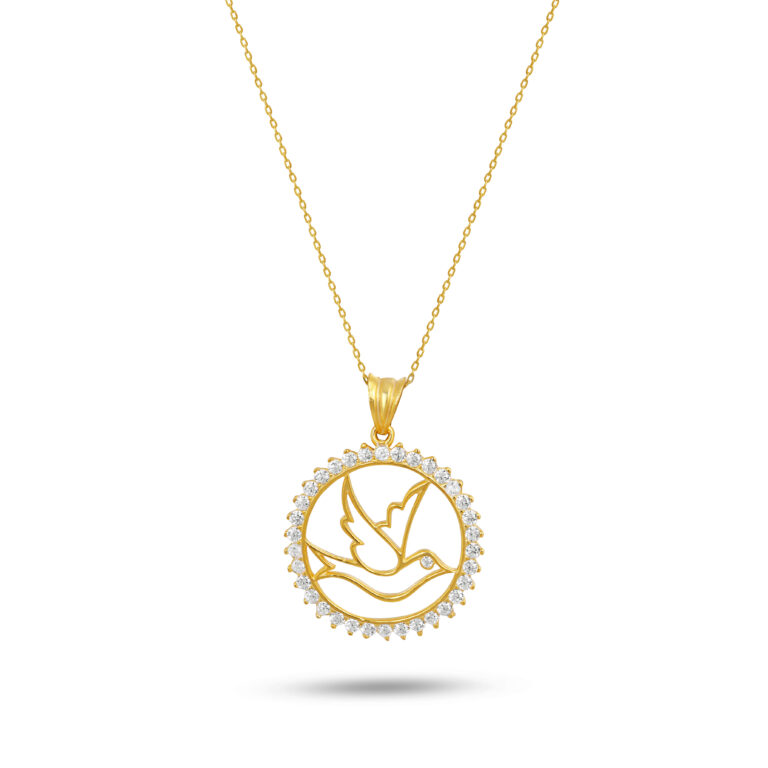 Ağaç Figürü Taş İşlemeli Altın Kaplama Gümüş Kolye