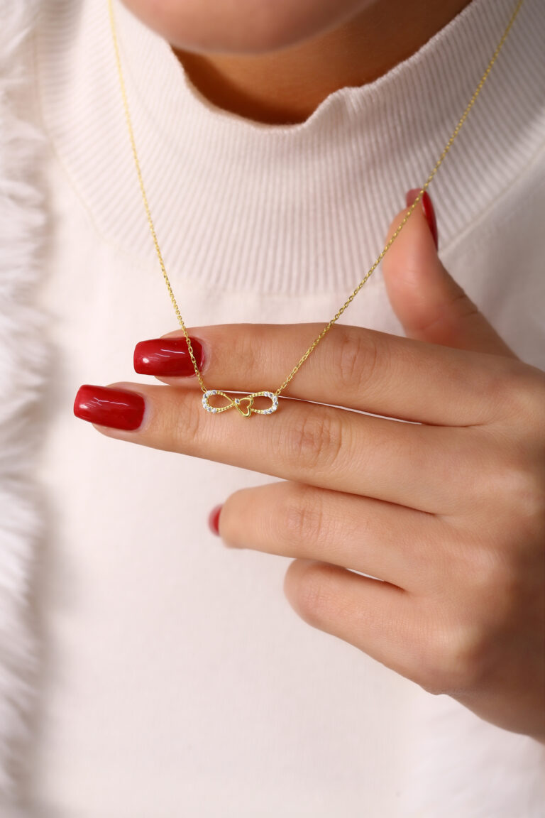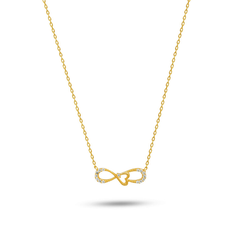 Altın kaplama taşlı sonsuzluk ve kalp figürlü şık kolye.