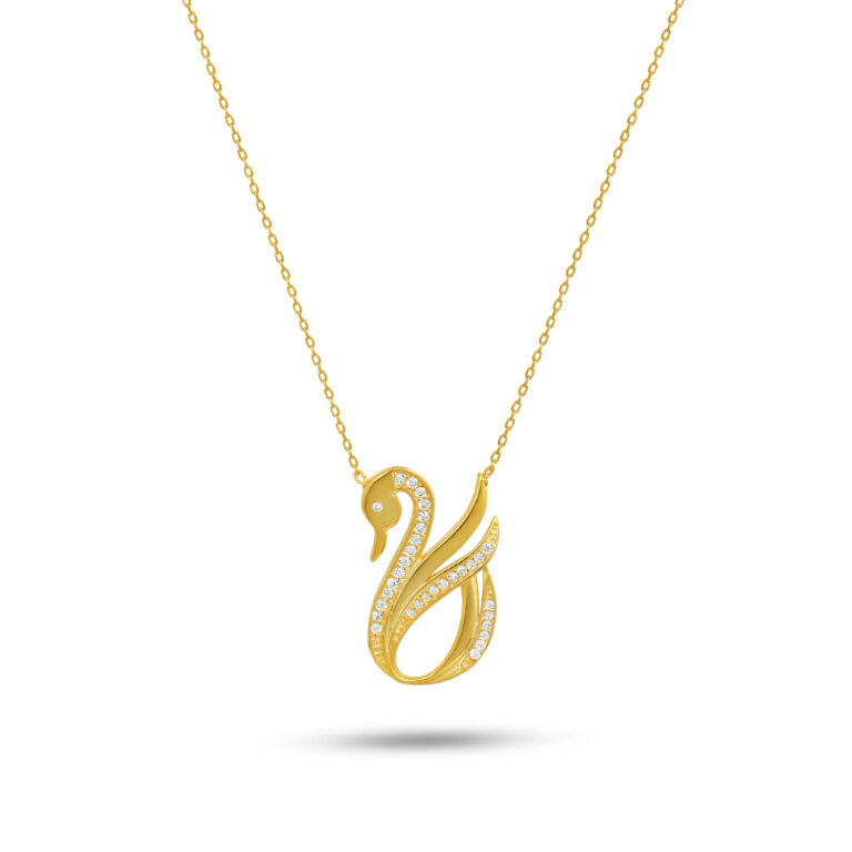 Taş detaylı kuğu figürlü zarif altın kaplama kolye.