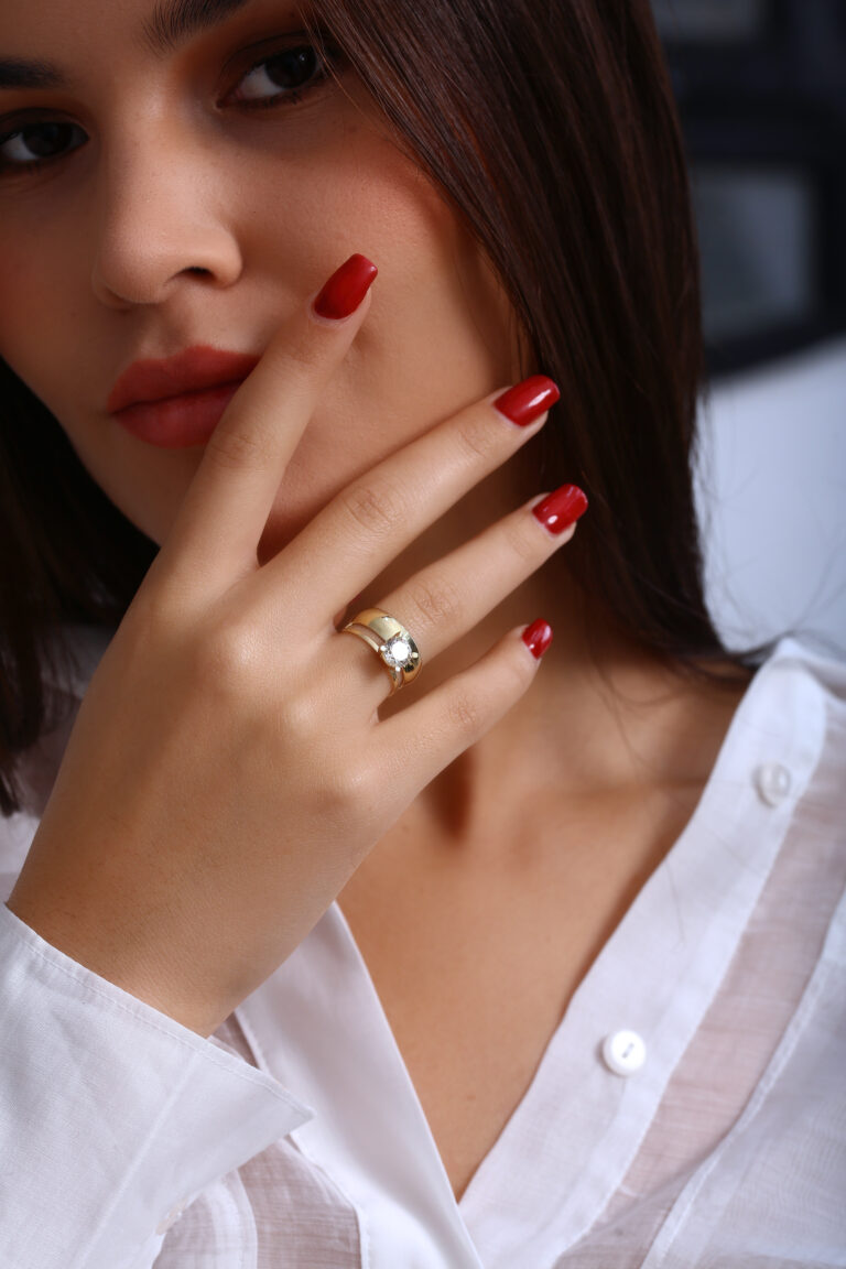 Zarif ince bant ve klasik tek taş formu ile her stile uygun bir şıklık sunar.