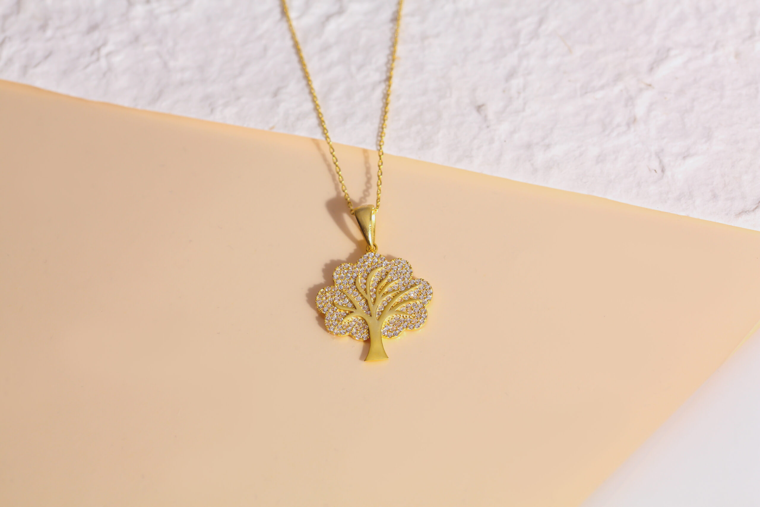 Ağaç Figürü Taş İşlemeli Altın Kaplama Gümüş Kolye