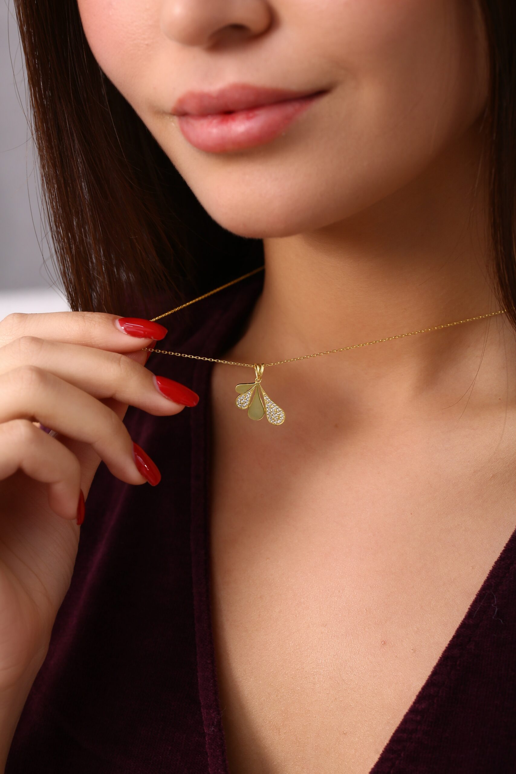 Üçlü damla formu ve taşlı detaylarıyla göz alıcı, şık ve modern bir kolye modeli.
