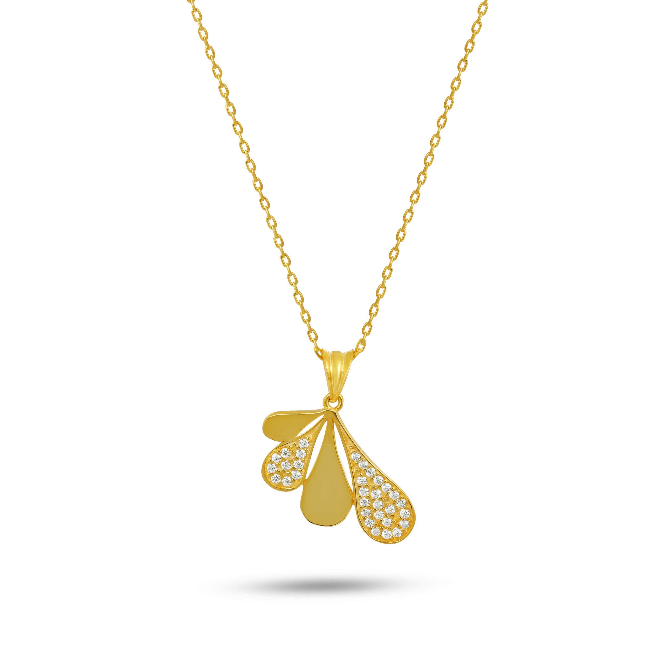 Damla Formu Üç Parça Taşlı Altın Kaplama Gümüş Kolye