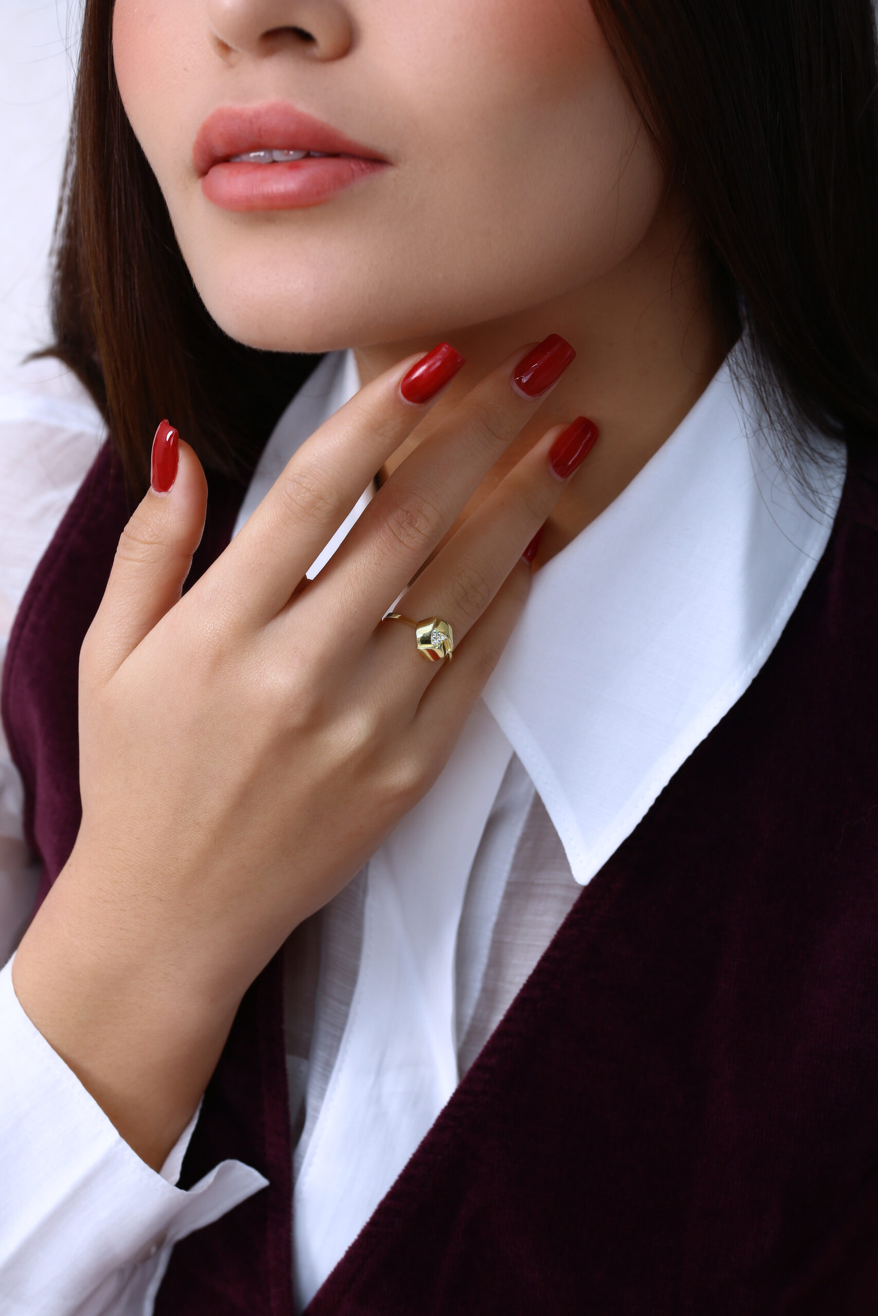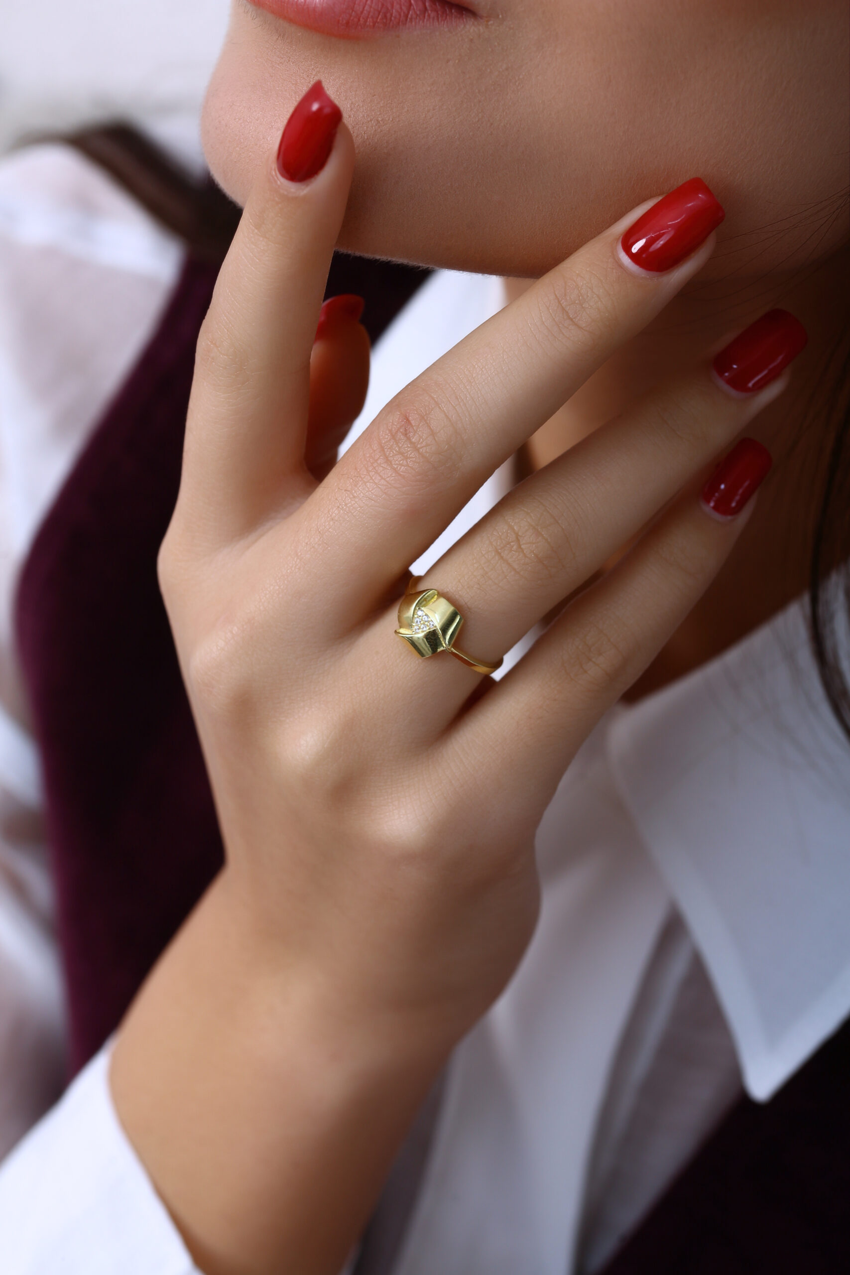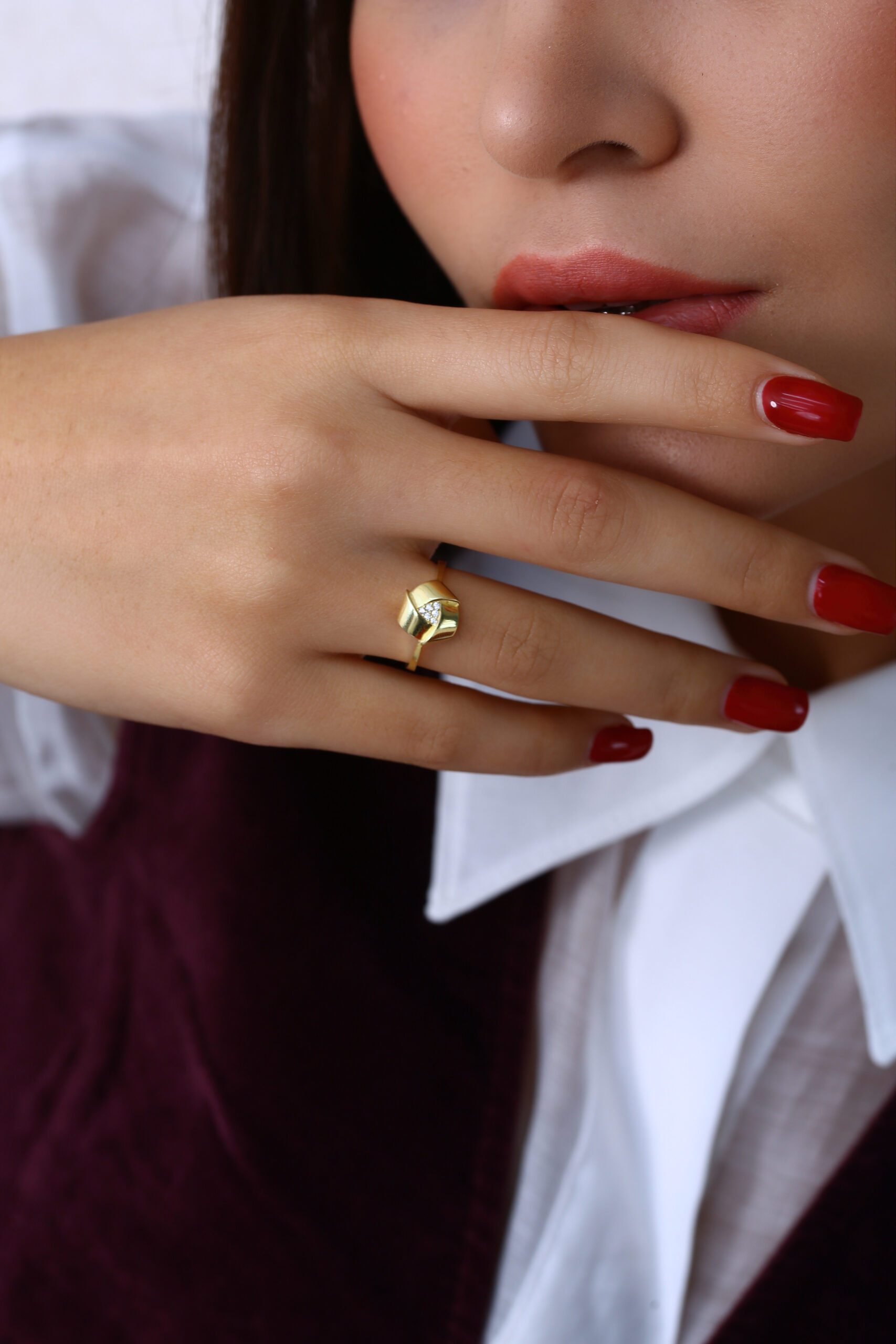 Geometrik kıvrımlı gövdesi ve üstteki küçük taş dizilimiyle dikkat çeken bu yüzük, modern bir duruşa sahiptir. GoldPark’ın özgün tasarımlarından olan model, günlük stile hafif ama etkili bir dokunuş getirir.