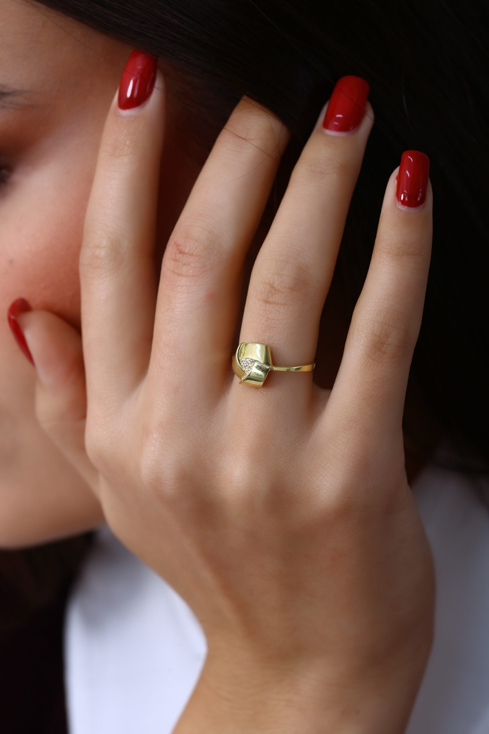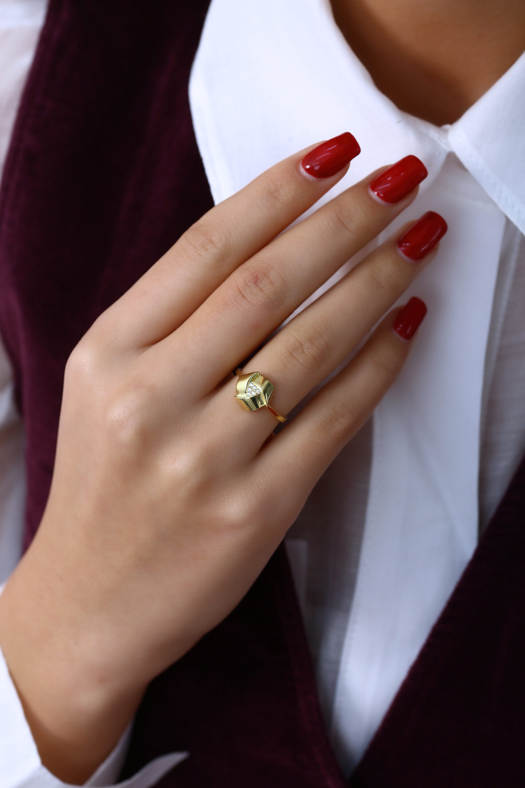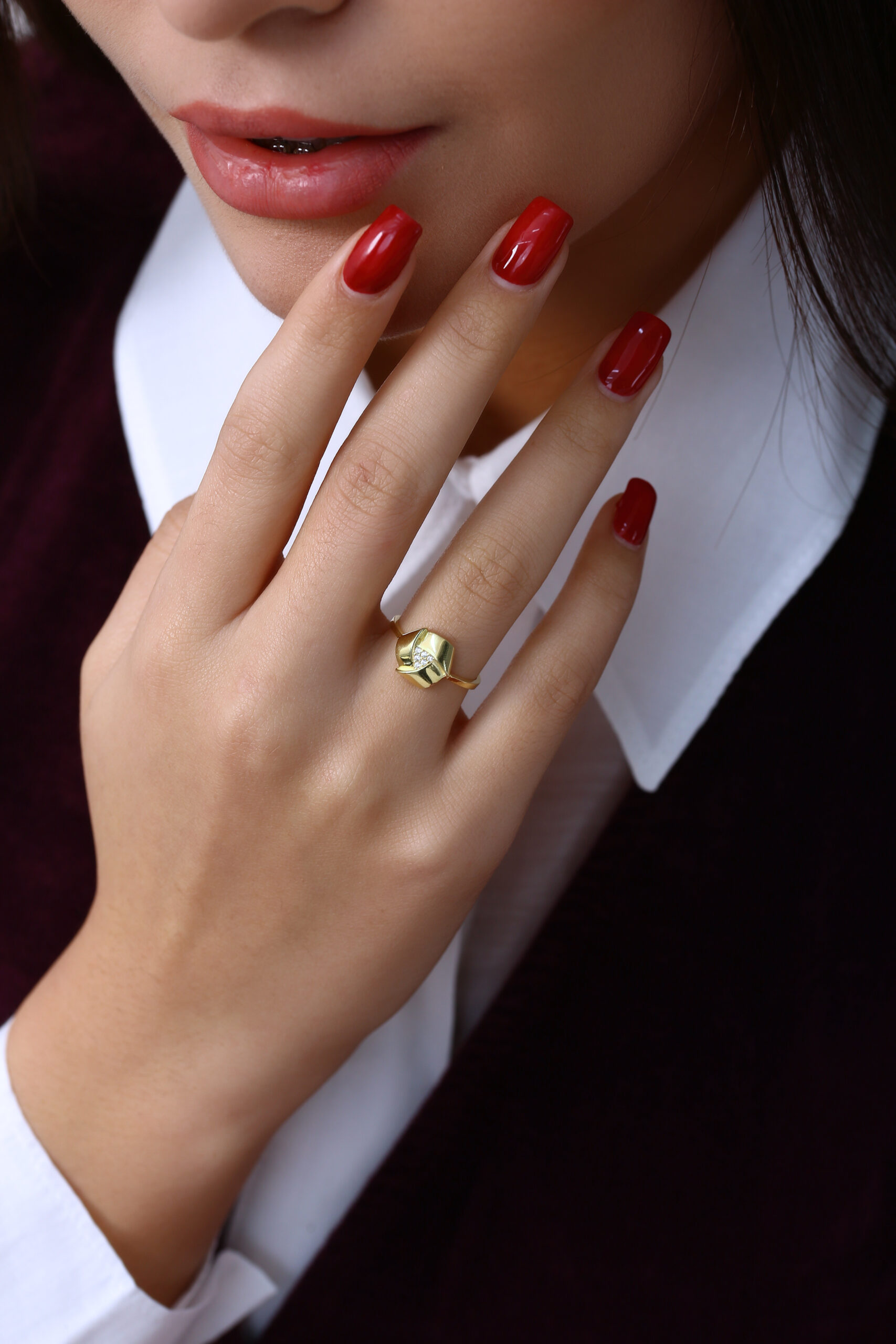Geometrik kıvrımlı gövdesi ve üstteki küçük taş dizilimiyle dikkat çeken bu yüzük, modern bir duruşa sahiptir. GoldPark’ın özgün tasarımlarından olan model, günlük stile hafif ama etkili bir dokunuş getirir.
