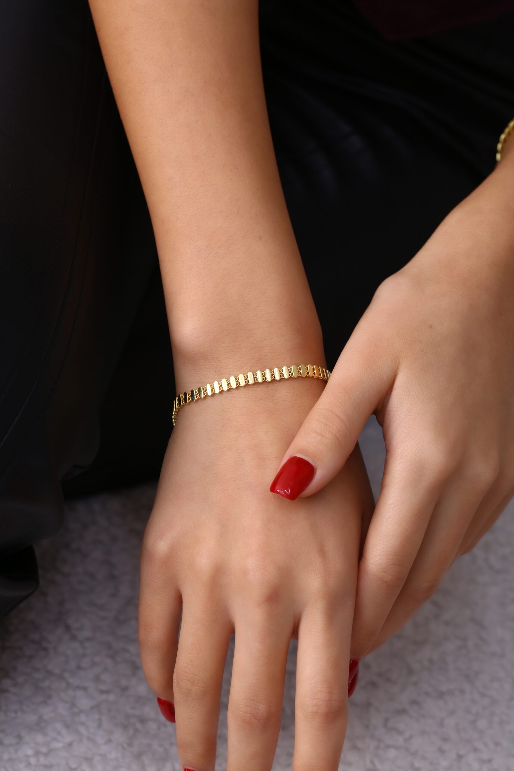 Saatle birlikte kombinlendiğinde bilekte mükemmel bir bütünlük sağlar. GoldPark’ın ince zincir kolyeleriyle birlikte şık bir set oluşturur.