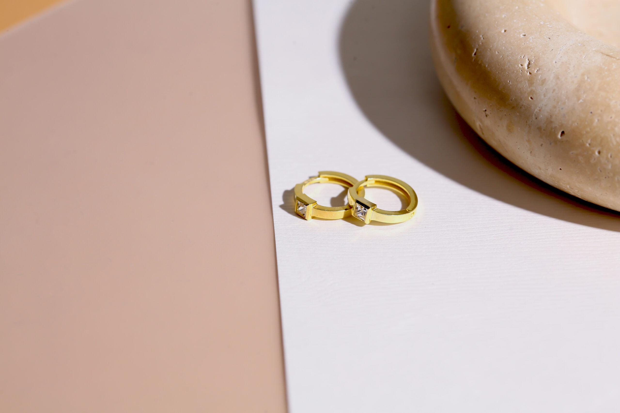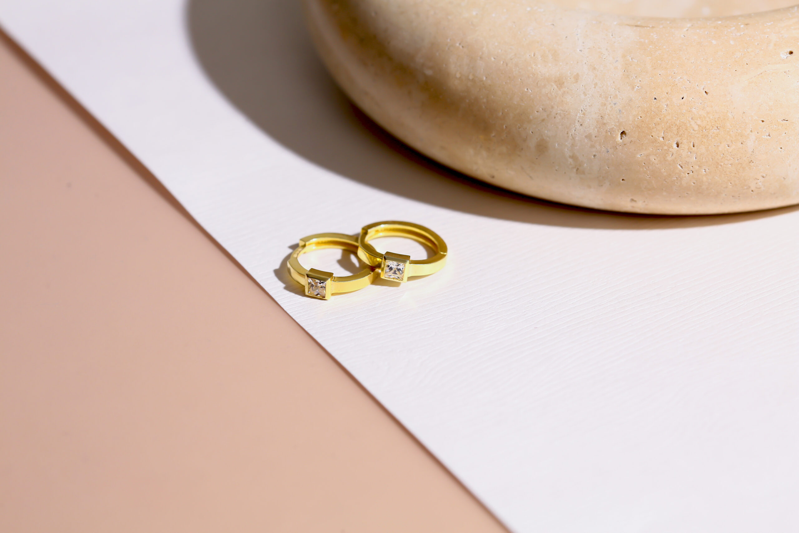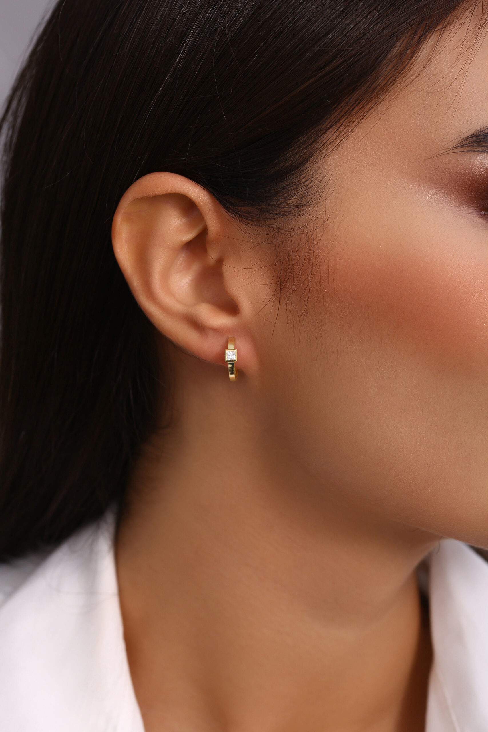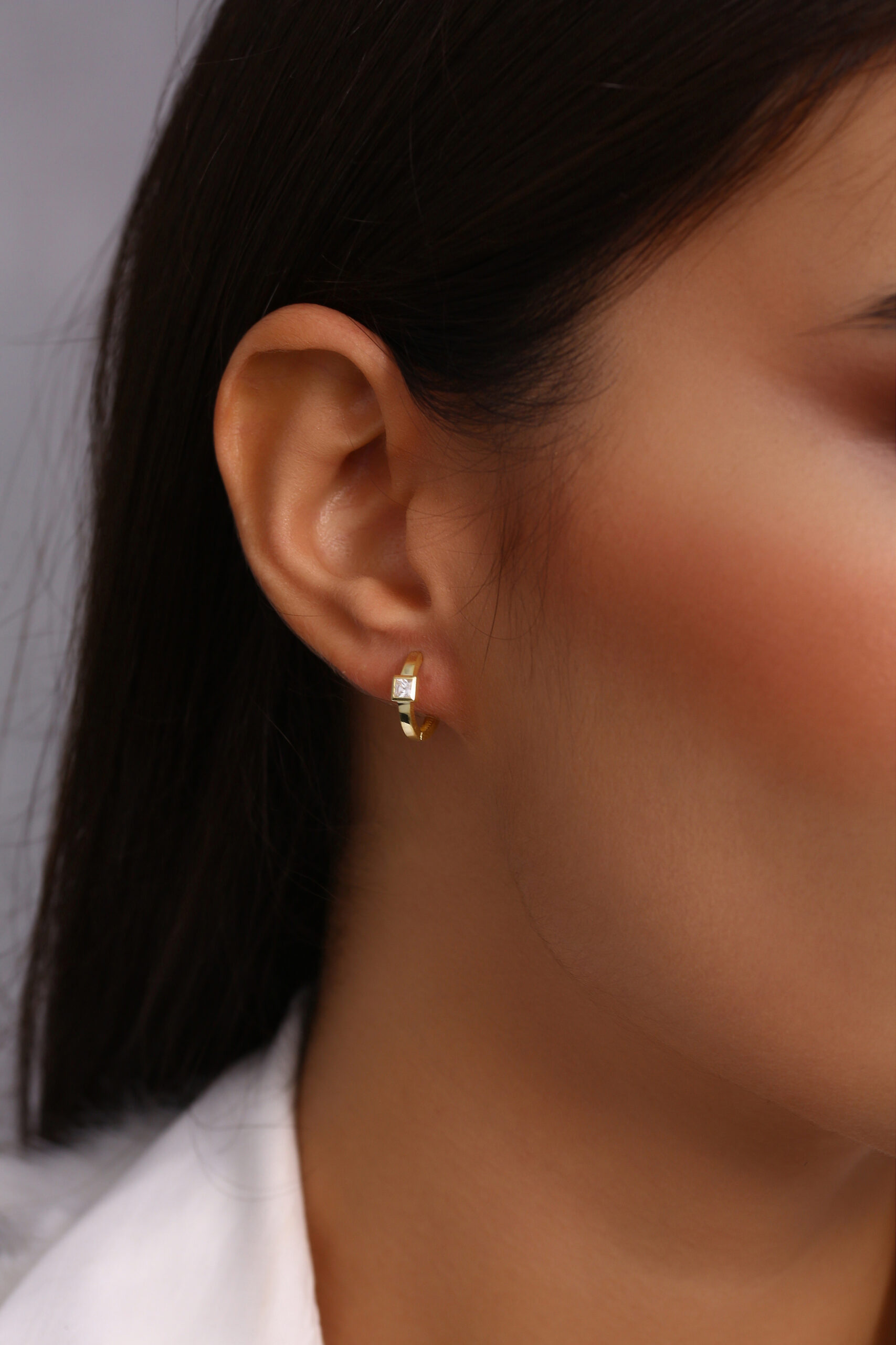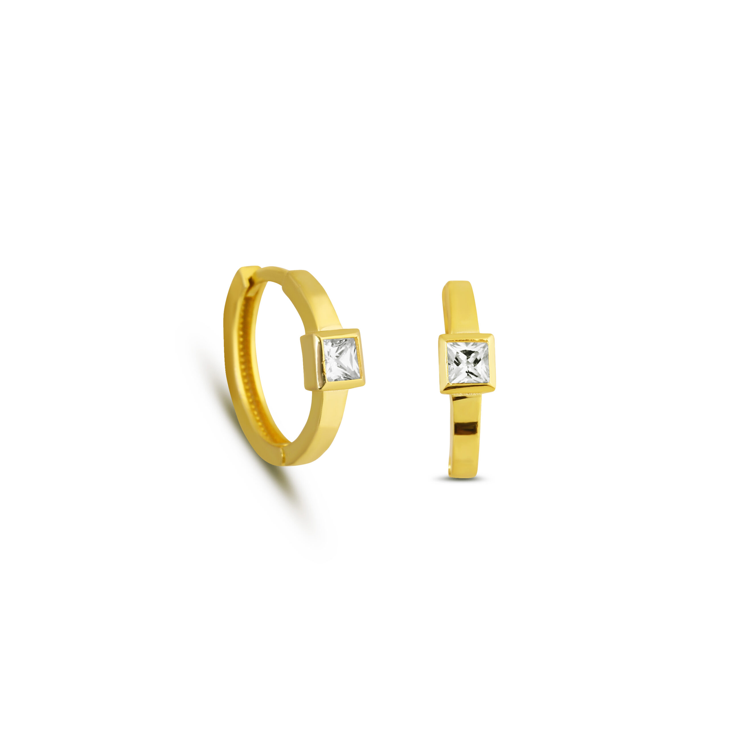 Kare Taşlı Minimal Altın Kaplama Halka Küpe