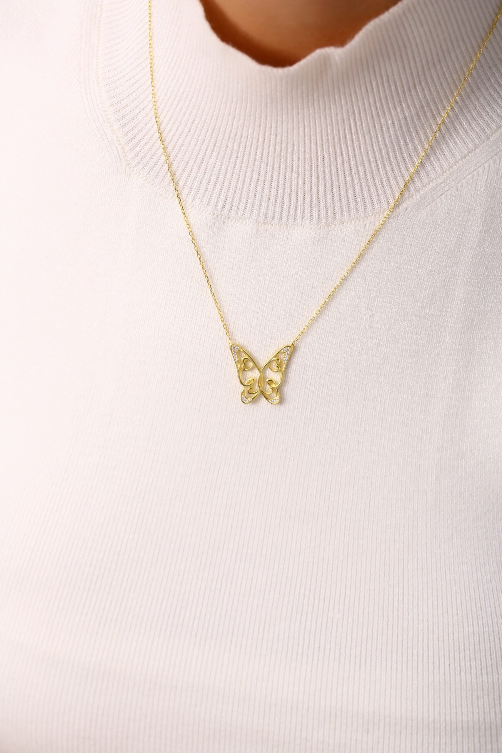 Minimal Kelebek Figürlü Altın Kaplama Kolye