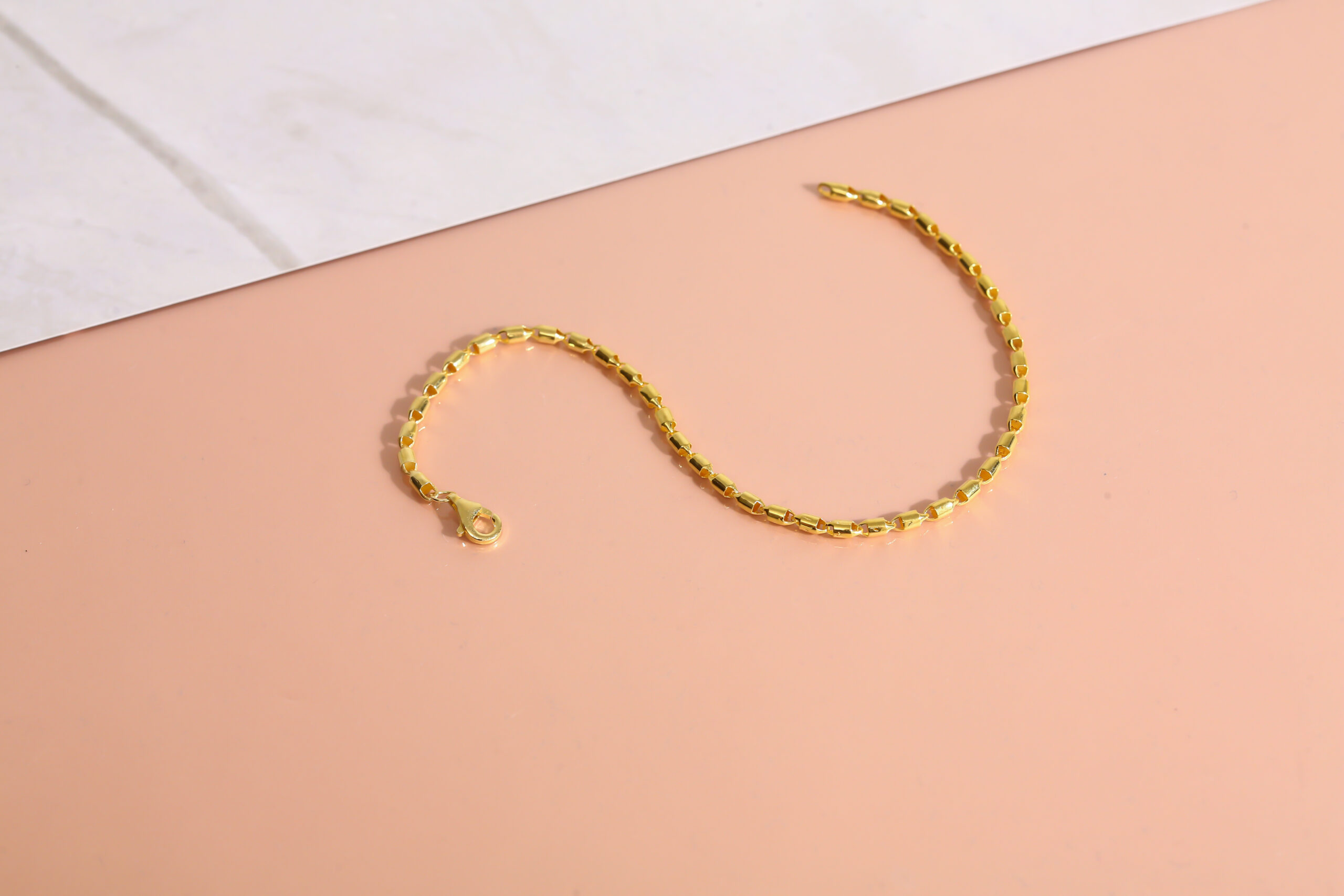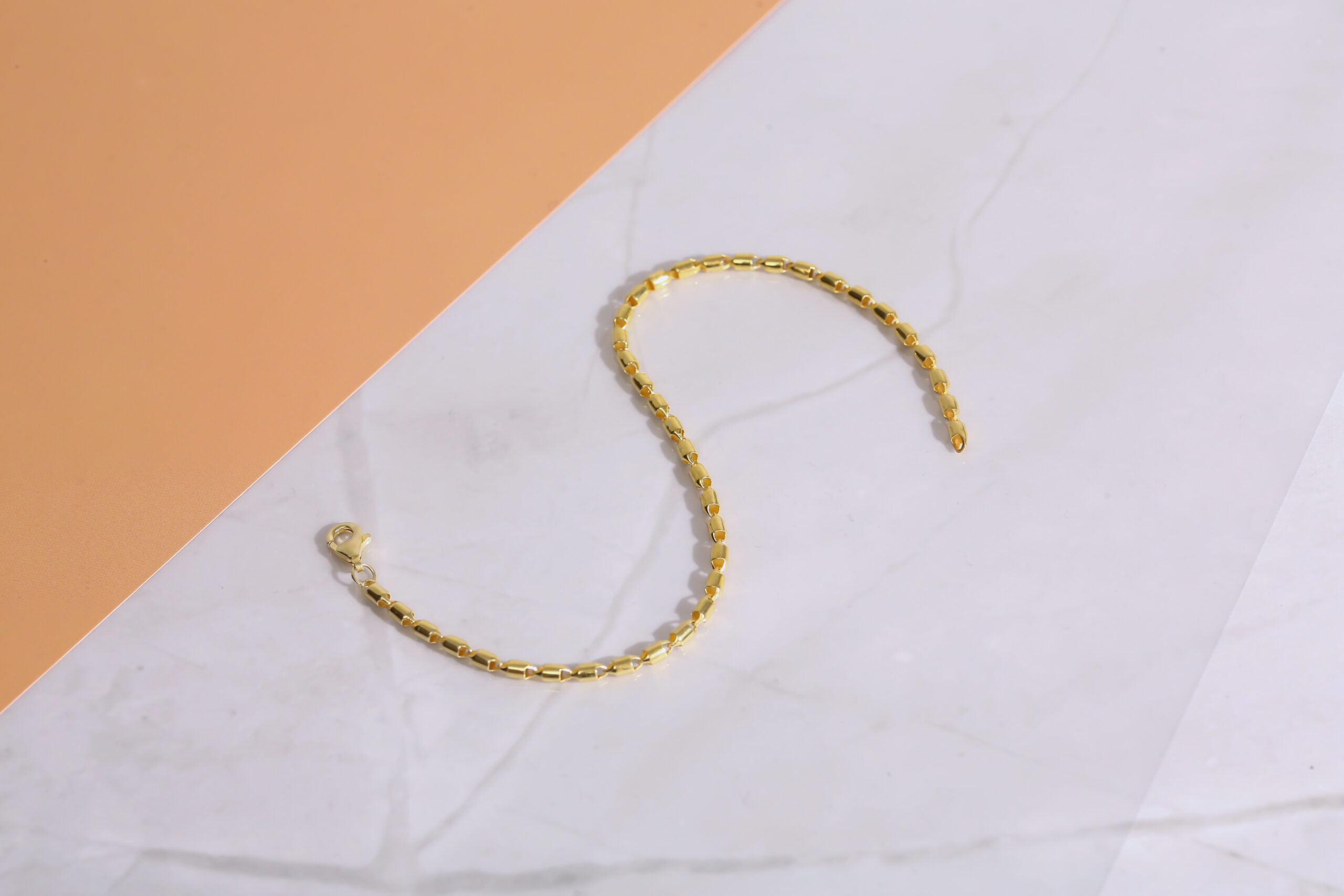 İnce oval halkaların birleşimiyle oluşturulan bu zarif bileklik, minimal tasarım sevenler için ideal bir seçimdir. Altın kaplama yüzeyi sade ama etkili bir parlaklık sunar. Hafif yapısı sayesinde gün boyu rahat kullanım sağlar. Diğer bilekliklerle kolayca kombinlenebilir ve her stile uyum sağlar.