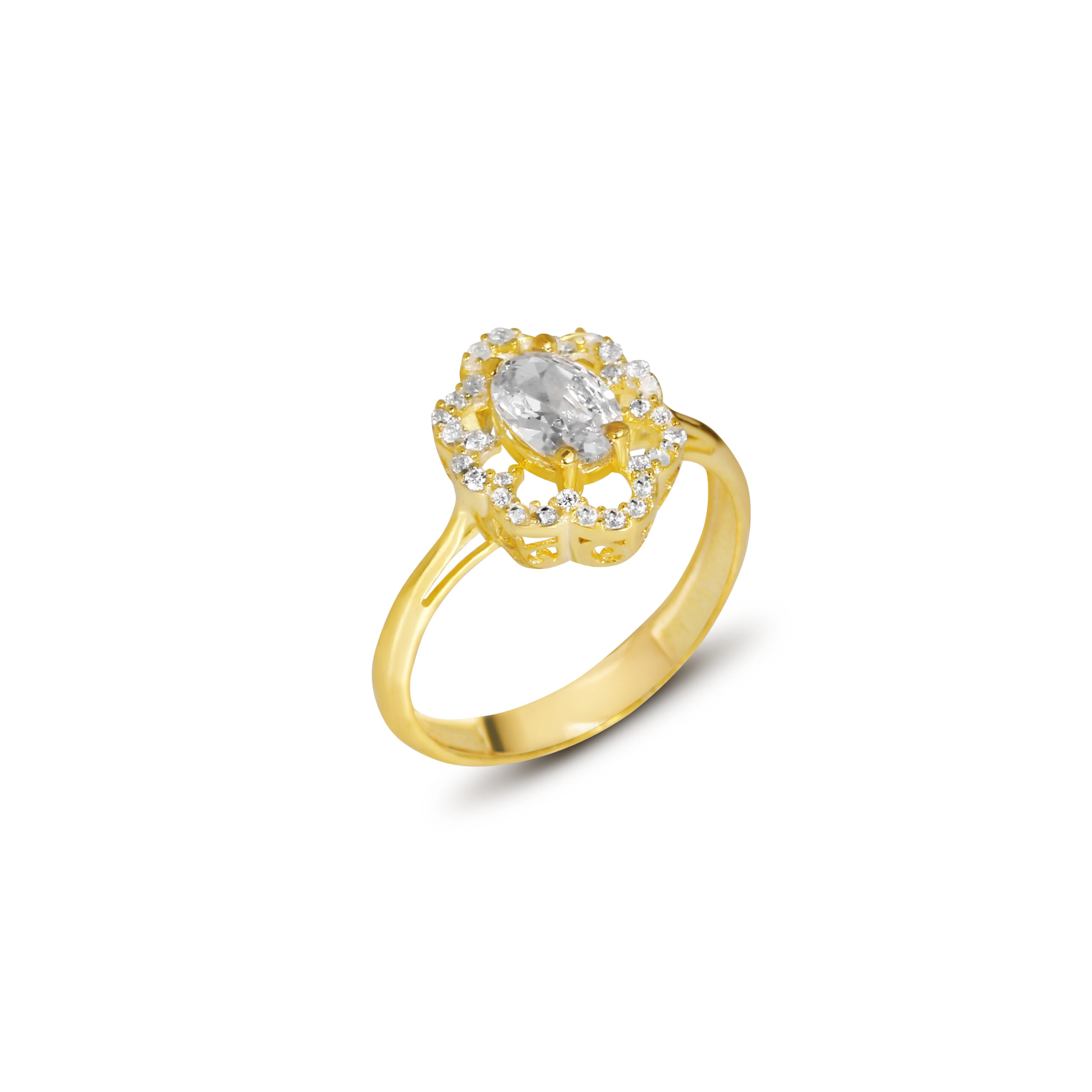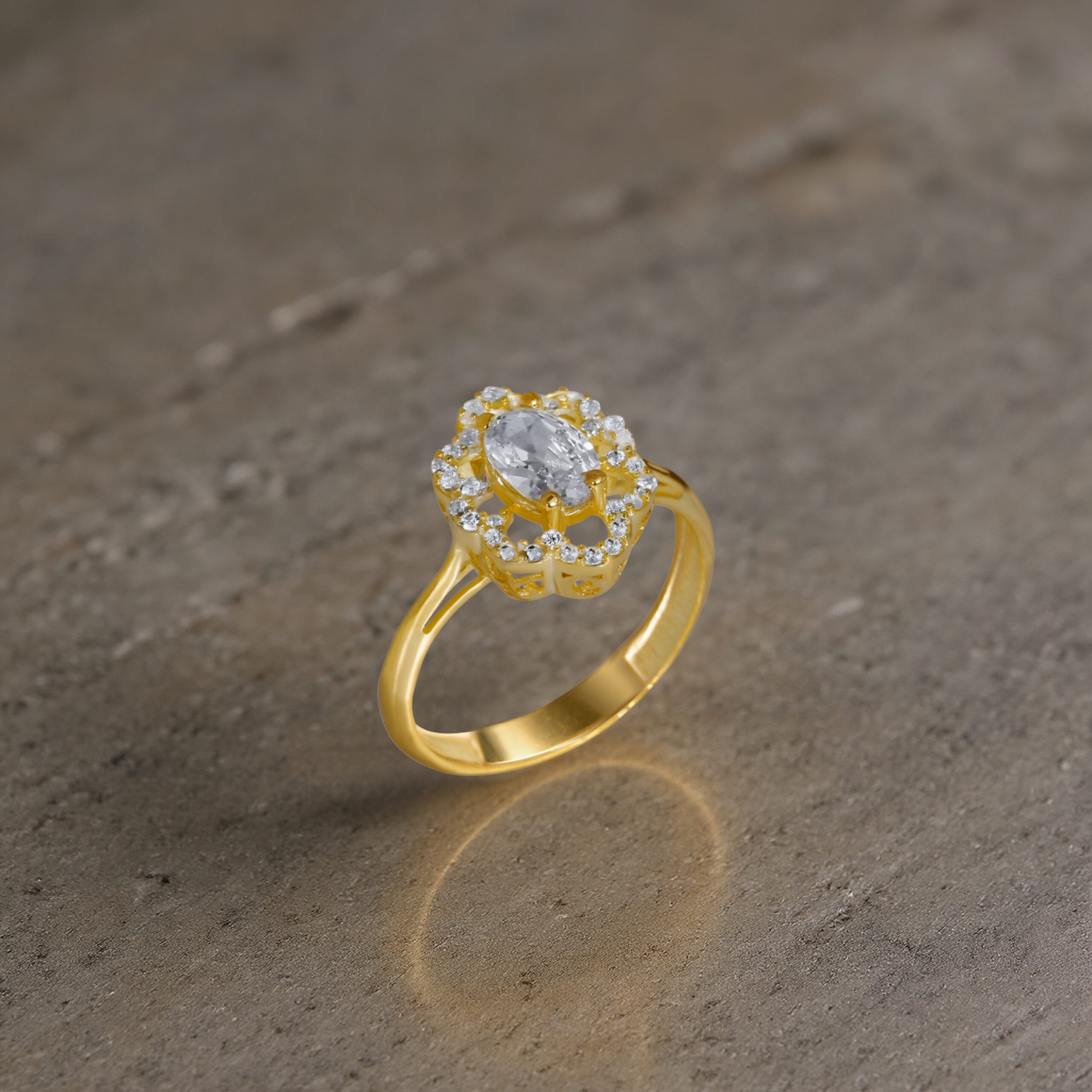 Oval Taş Çevresi Işıltılı Gold Kadın Yüzük