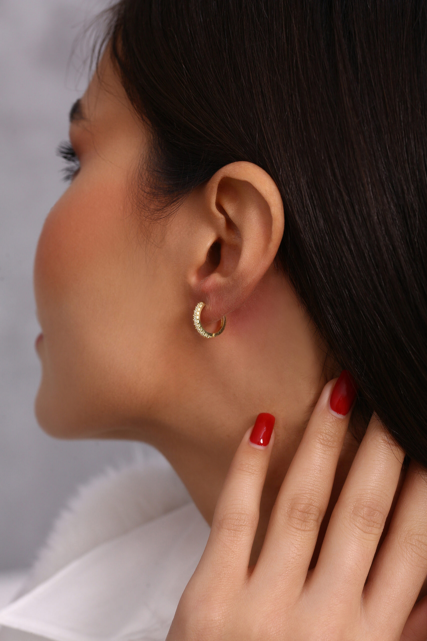 Sıralı Taşlı İnce Altın Kaplama Halka Küpe