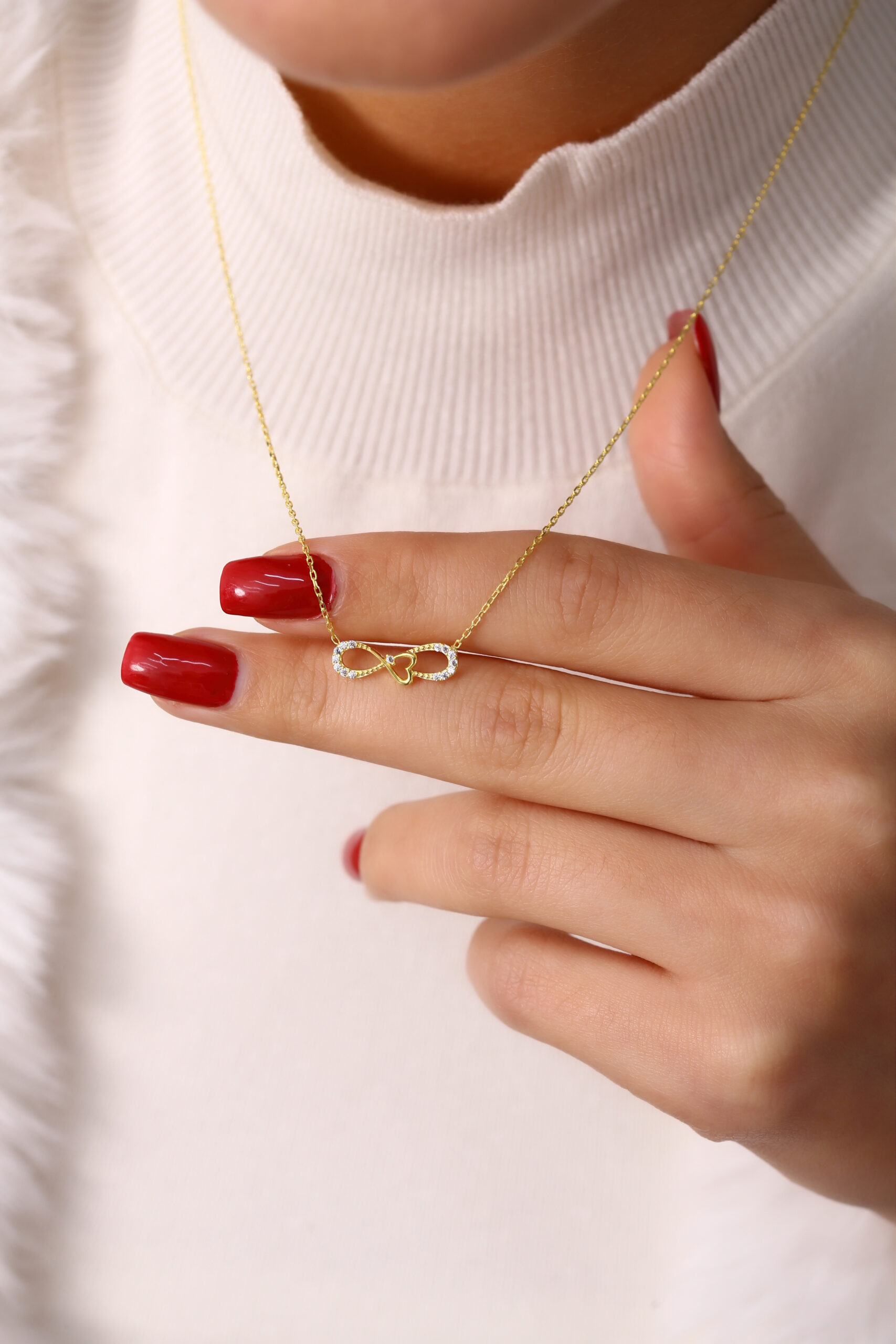 Taşlı Sonsuzluk ve Kalp Figürlü Zarif Kolye
