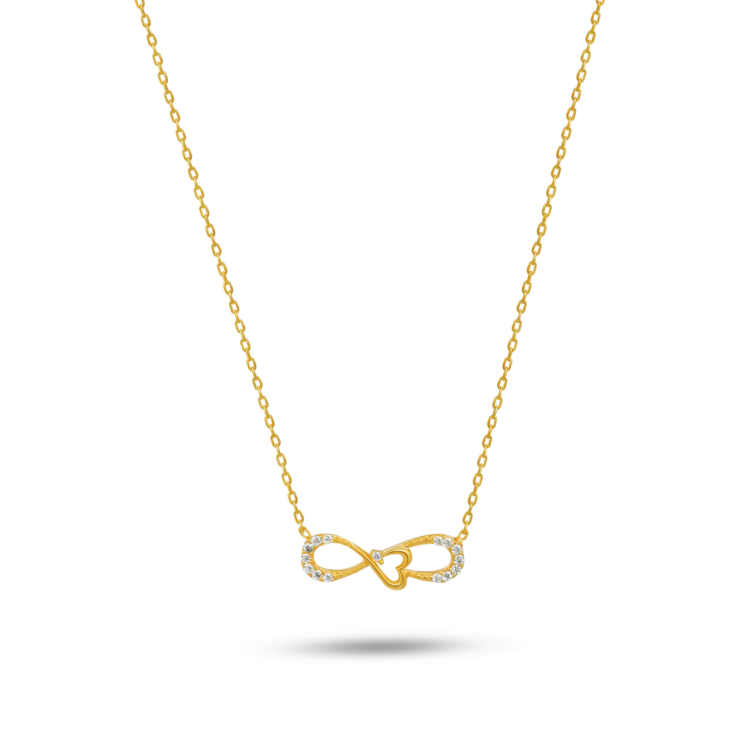 Altın kaplama taşlı sonsuzluk ve kalp figürlü şık kolye.