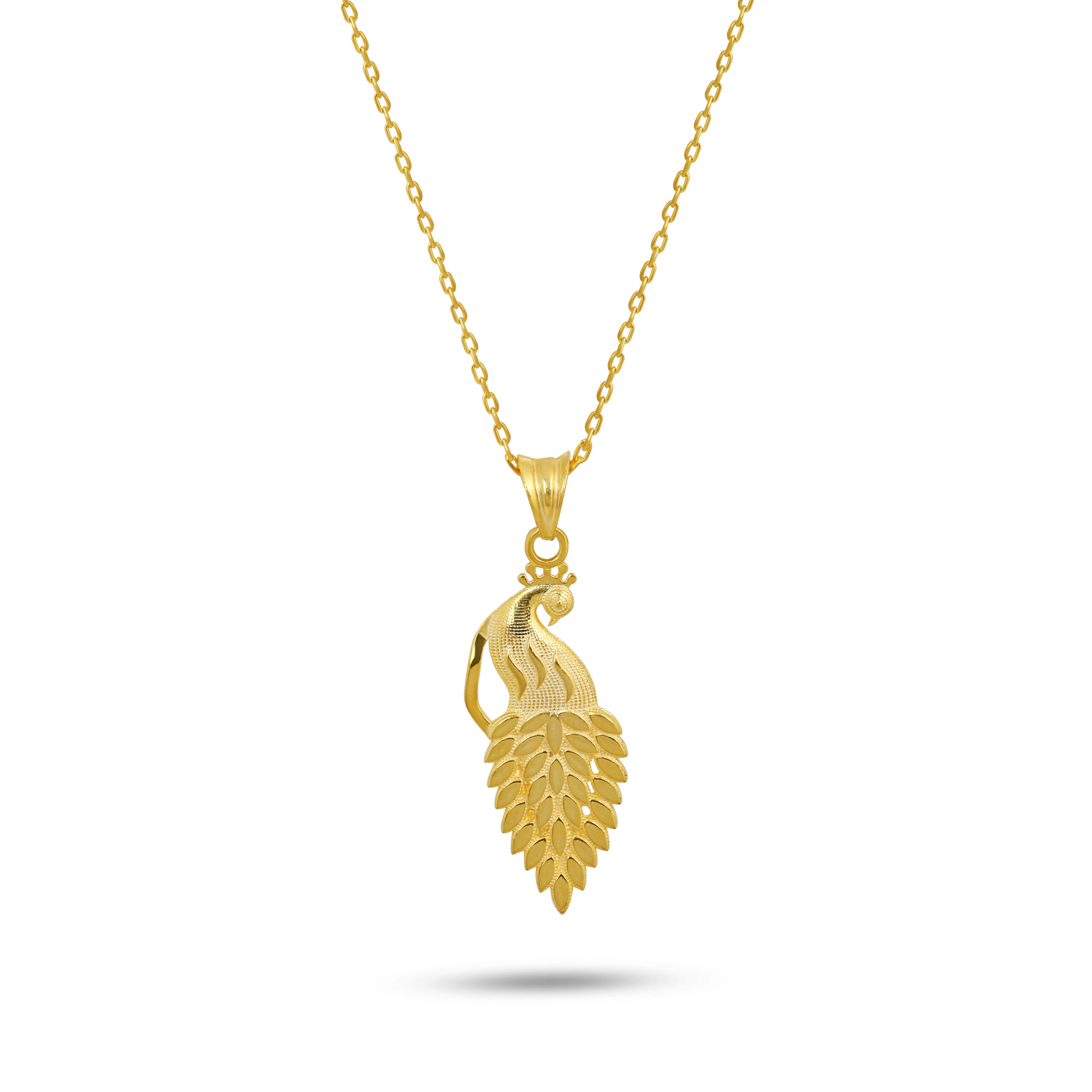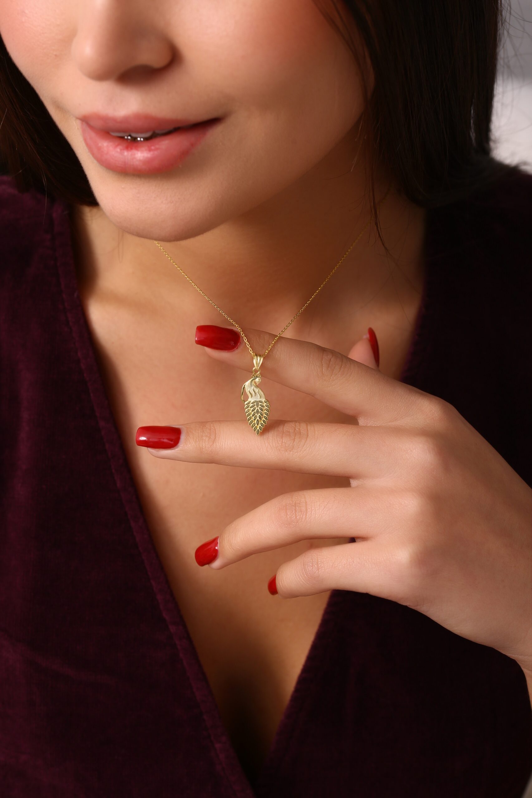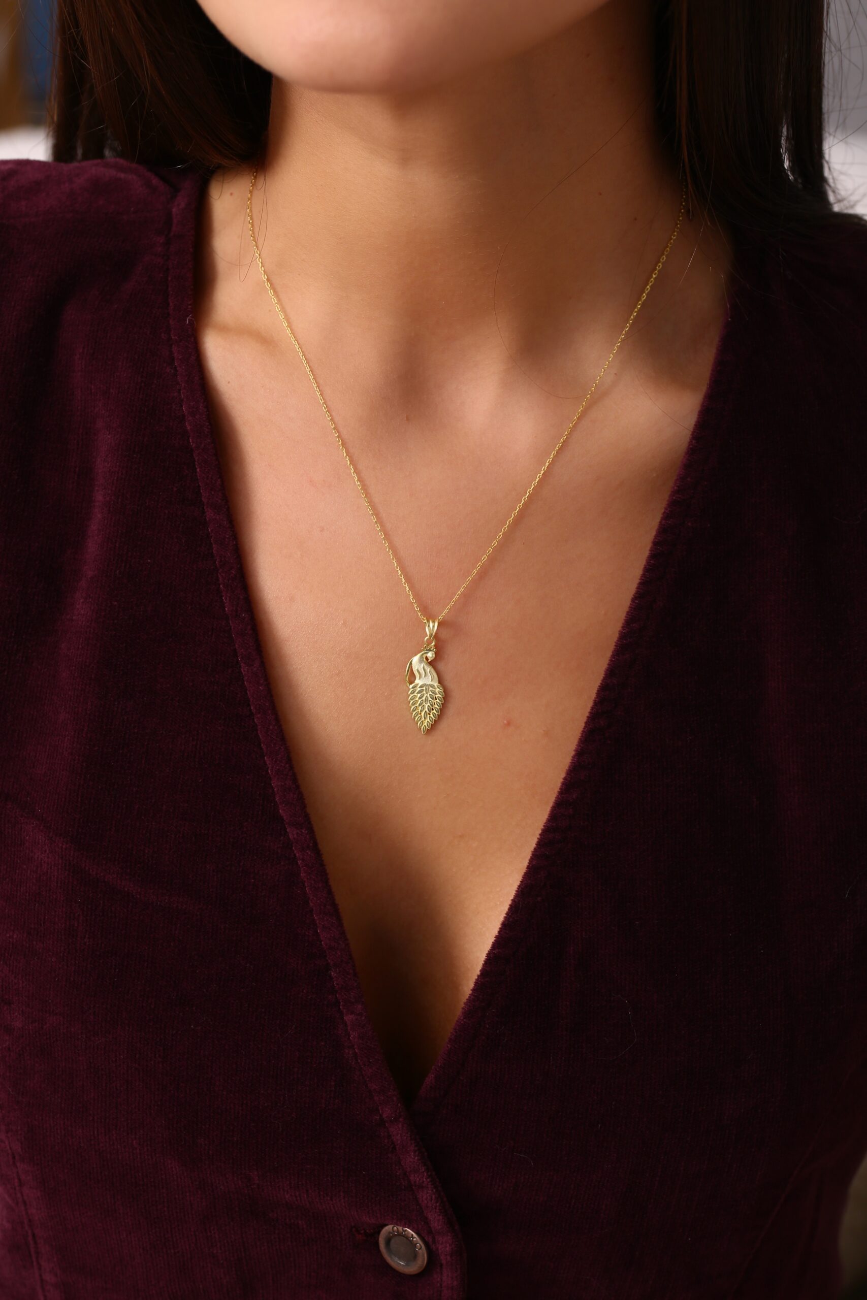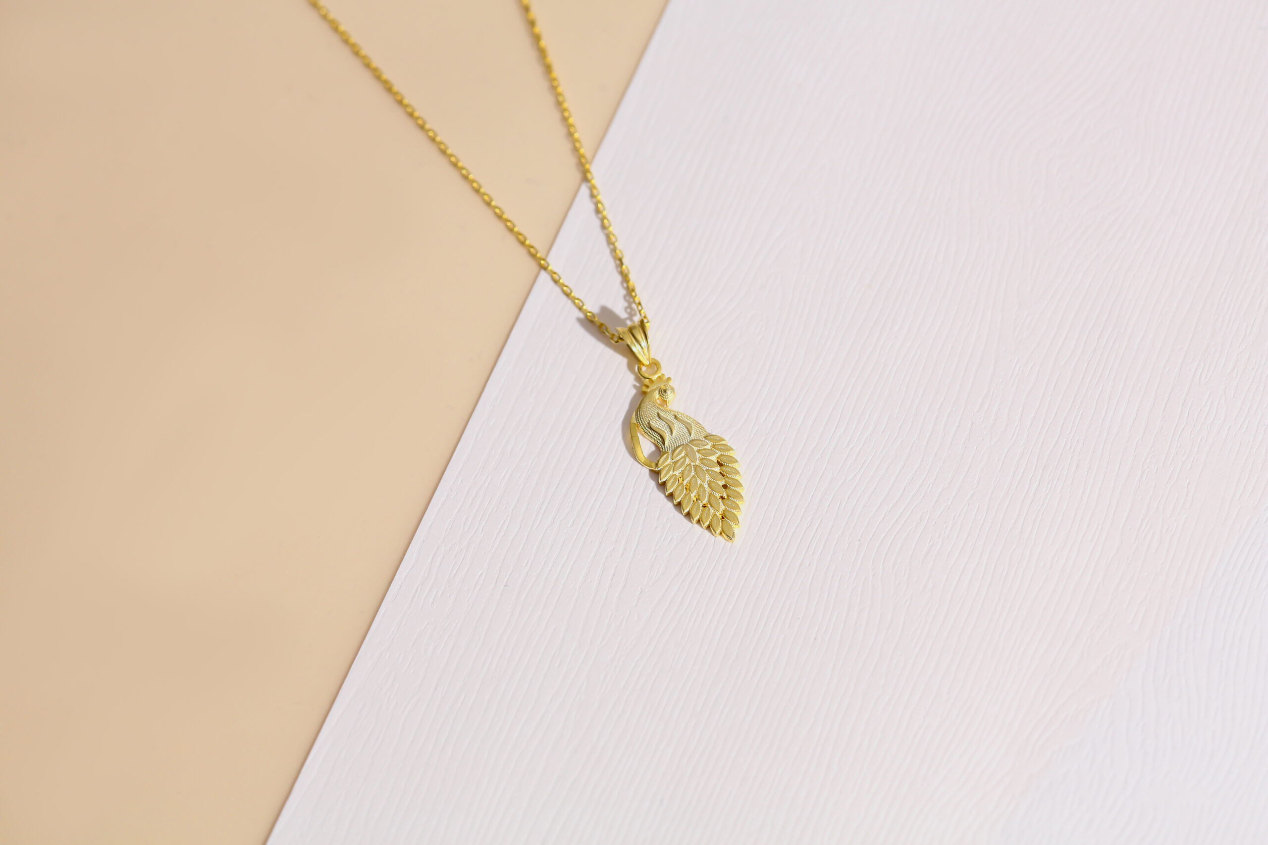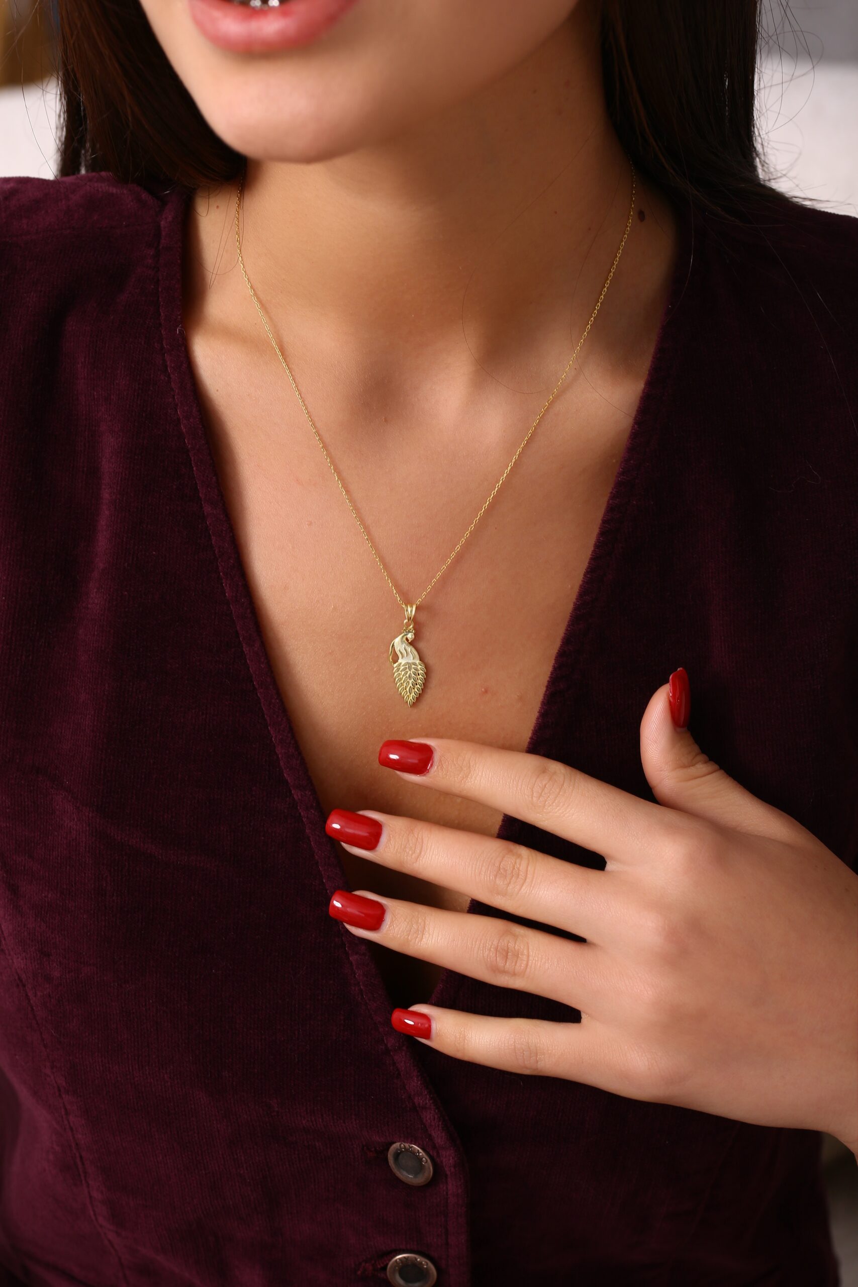 Sanatsal detaylarla işlenmiş tavus kuşu kuyruğu formunda, zarif ve anlamlı bir kolye.