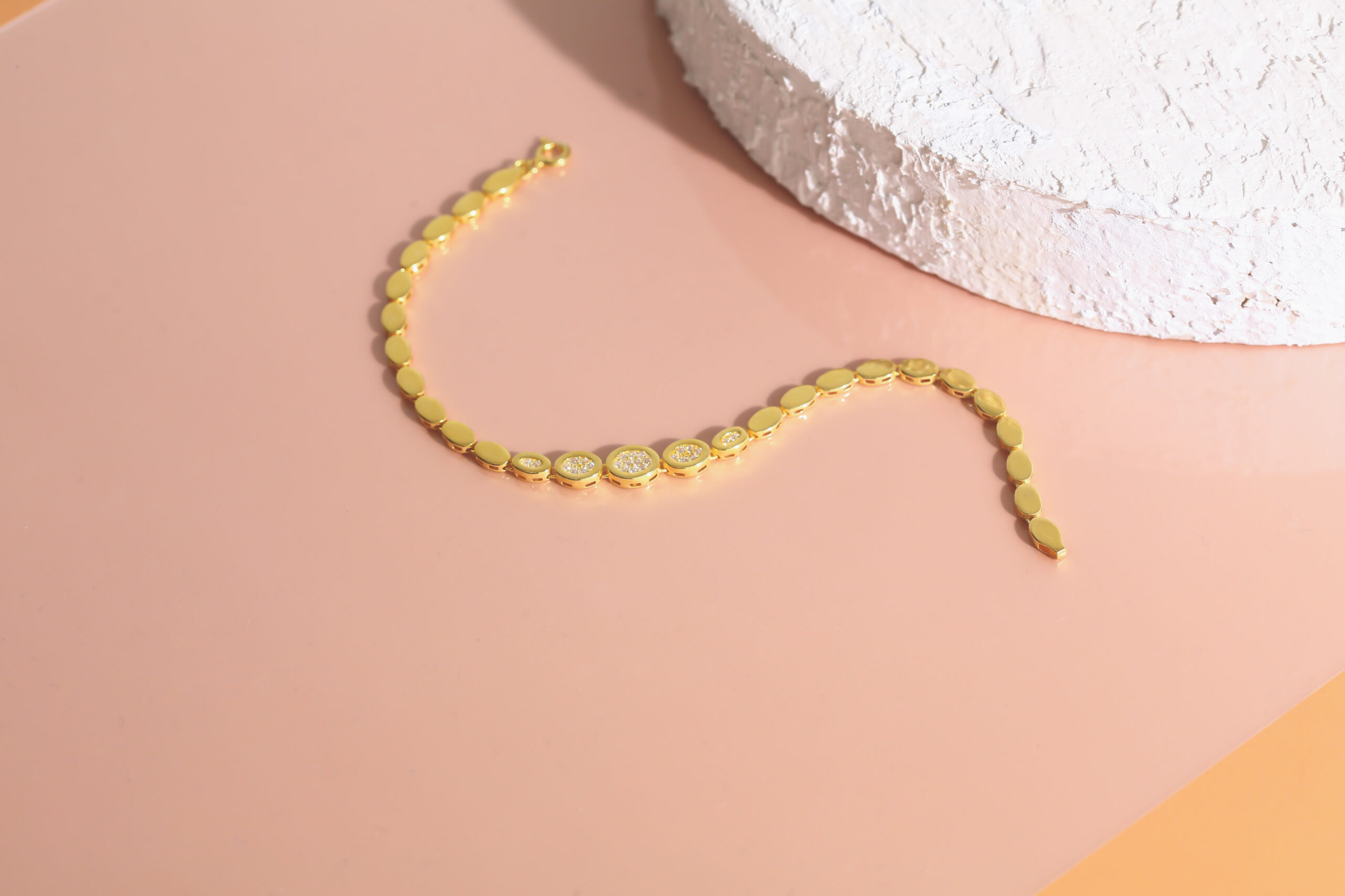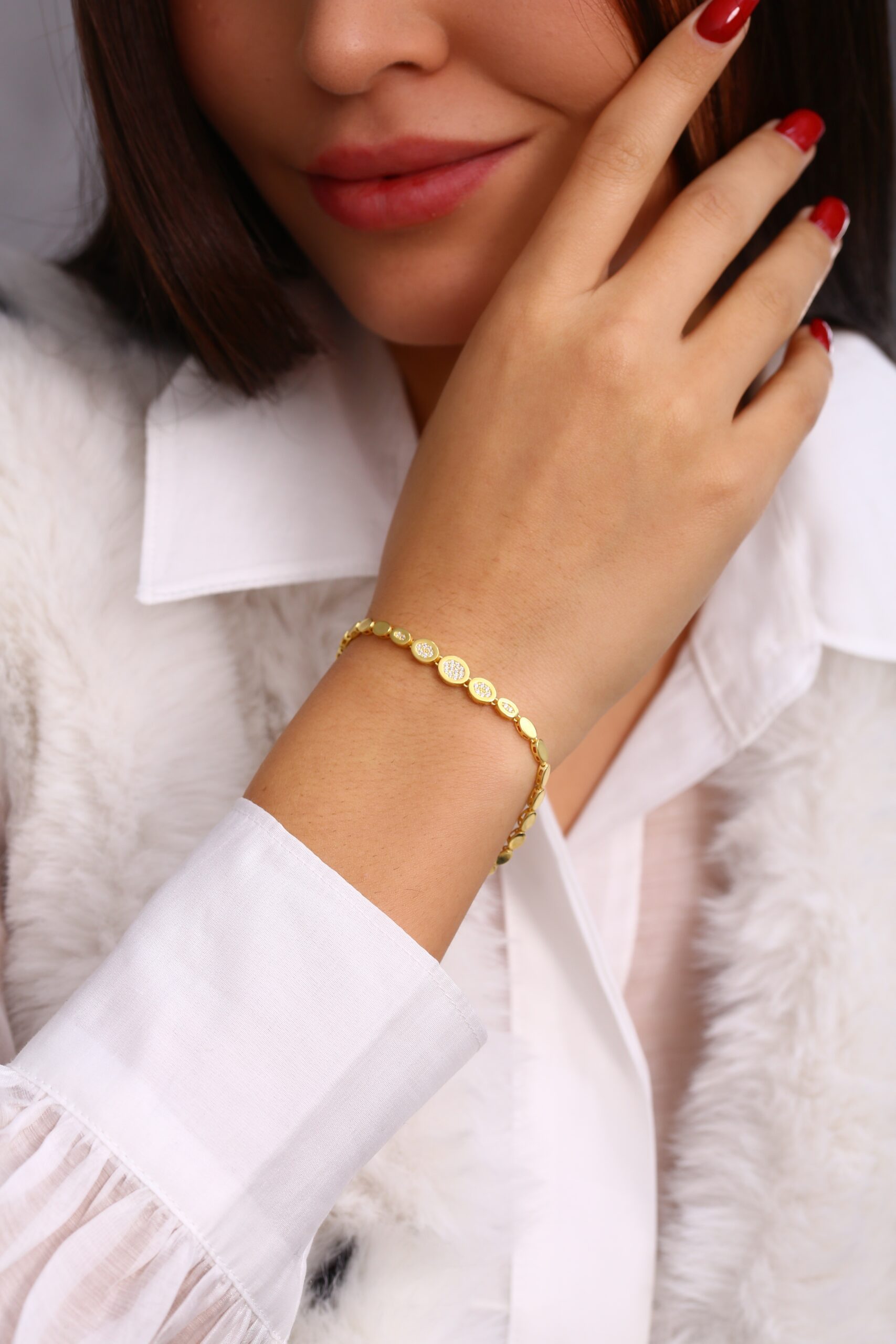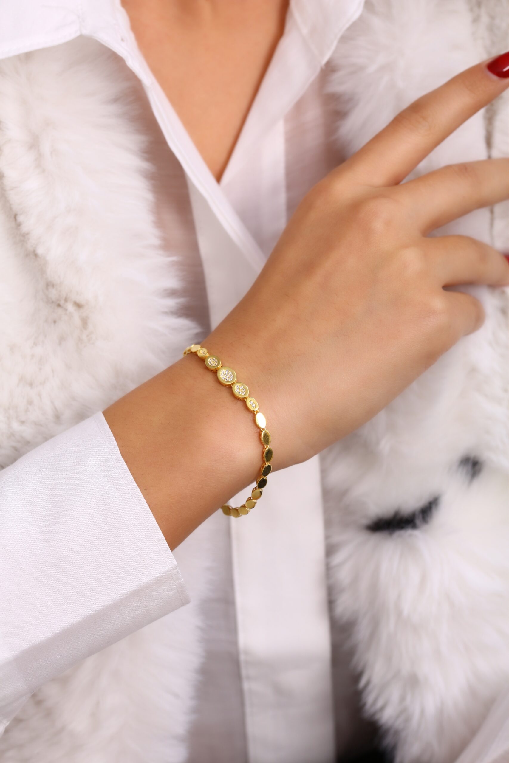 Zigzag bağlantı formundan ilham alınarak tasarlanan bu modern bileklik, bilekte hareketli bir ışıltı oluşturur. Her bir bağlantının üç boyutlu yapısı ışığı farklı açılardan kırarak güçlü bir parlaklık sağlar. Tasarımı sayesinde hem minimal hem de modern bir duruş sergiler.