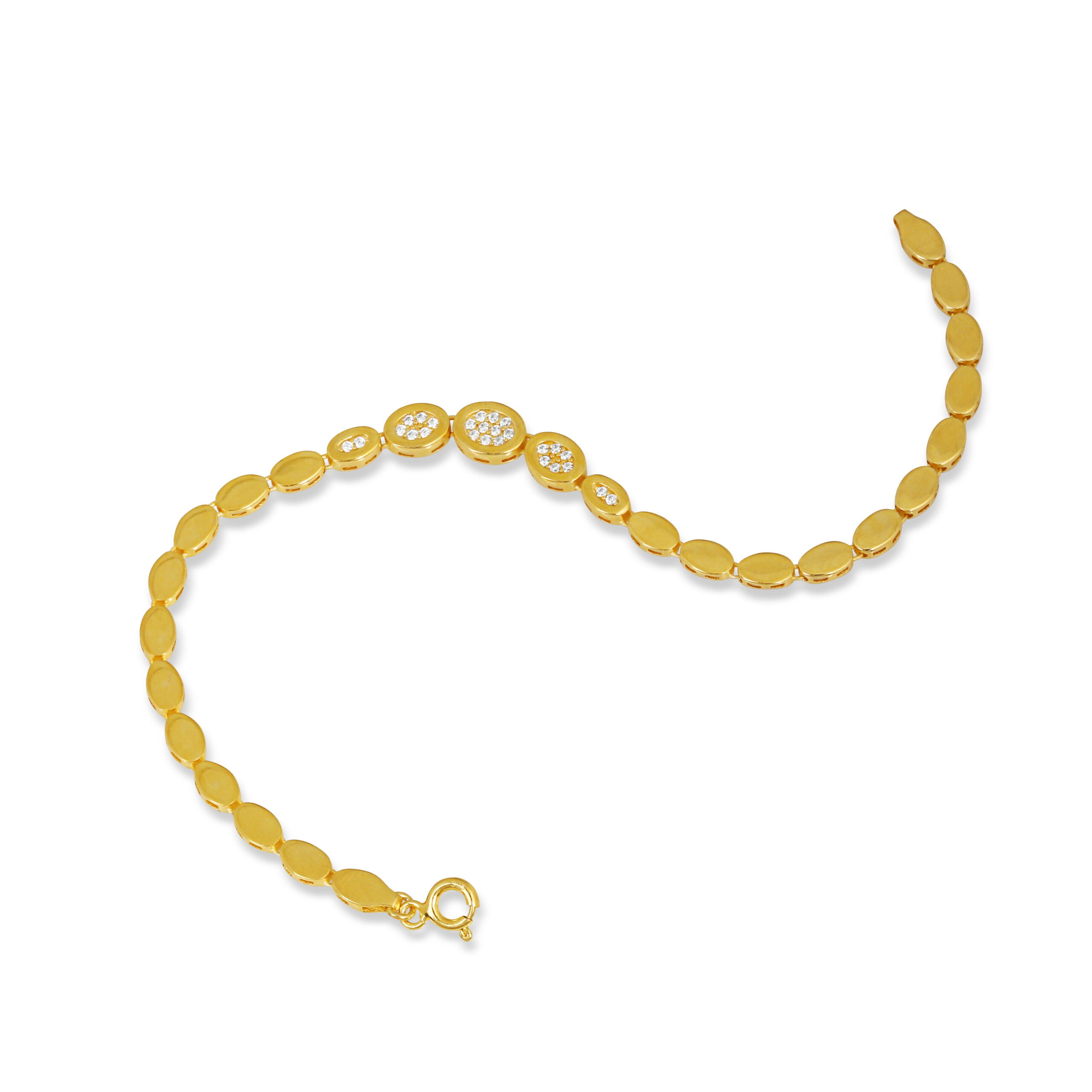 Üç boyutlu zigzag bağlantılarıyla dinamik bir parlaklık sunan modern ve dikkat çekici altın kaplama bileklik.